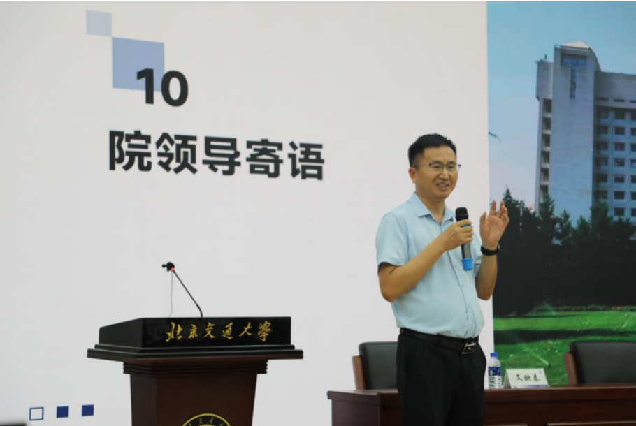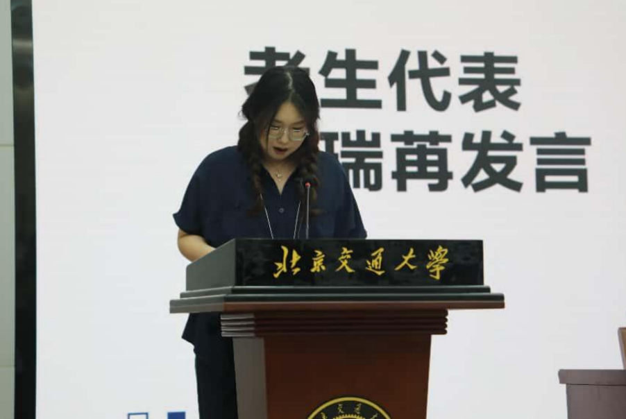 Zou Qiaoyi, a representative of new graduate students, shared her experience as a volunteer teacher and outlined her plans for graduate school, inspiring her classmates to embrace the new academic journey with greater resilience, unwavering beliefs, and profound thinking, cherish every day at Beijing Jiaotong University, and make the most of their youth.