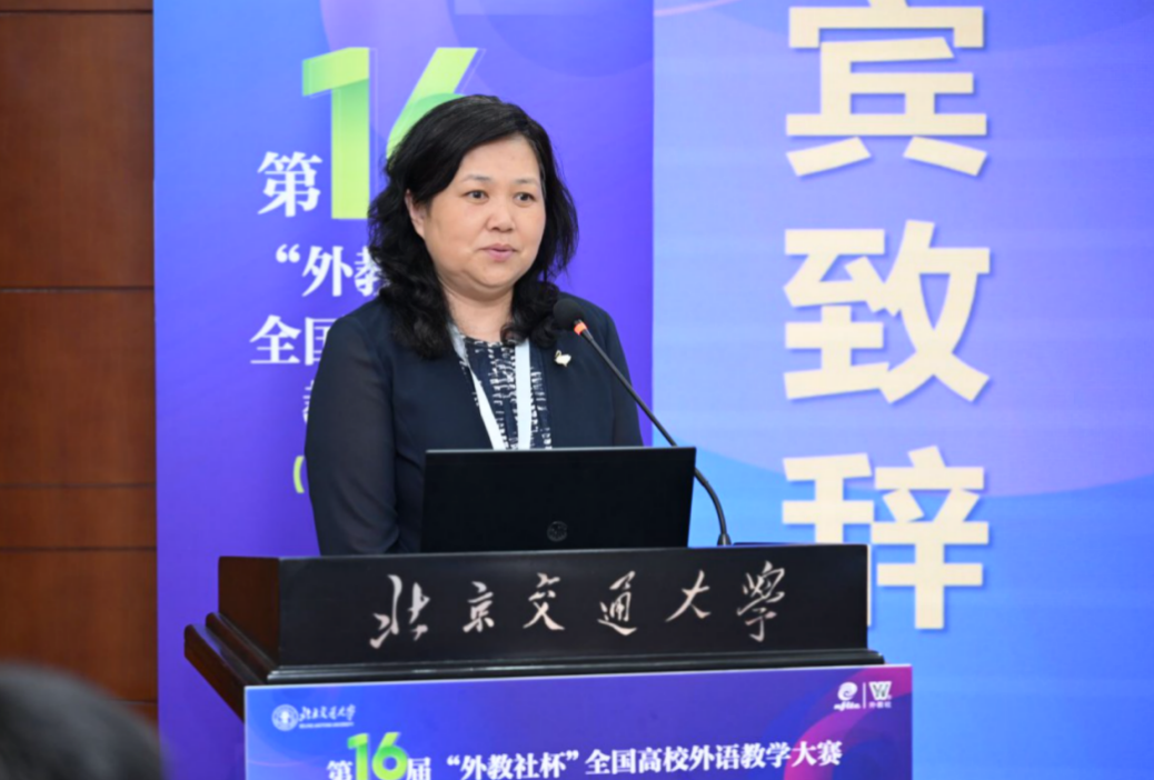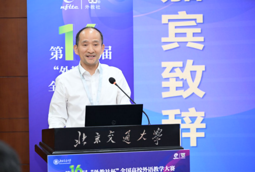 In his opening remarks, Professor Li Guoxiu, Vice President of BJTU, emphasized the university's long-standing commitment to reforming College English education and promoting teacher development. He introduced BJTU's international competence-based teaching framework — the "3 Connections, 4 Levels, 5 Modules, and 6 Dimensions" system — and the university's exploration of an integrated "Teaching–Learning–Assessment–Testing–Guidance" model, as well as its signature course series themed "Telling China's Stories Well". Professor Li highlighted that, under China's "Education Power" strategy, College English education must embrace reform in concepts, content, and models. He called on teachers to use the contest as an opportunity to achieve the goals of "promoting teaching through competition, advancing reform through competition, and enhancing excellence through competition", thereby improving both teaching competence and educational quality.