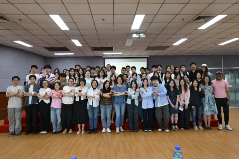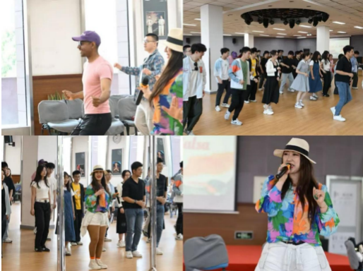 Finally, after judging and voting, the faculty panel presented awards to the winners in the dubbing, speech, singing, and calligraphy categories. The Fourth "Spanish Bridge" Bilingual Interpretation Contest at Beijing Jiaotong University concluded successfully. Participants gathered for a group photo and, led by guest performer Ema, relaxed by learning Salsa dance steps.